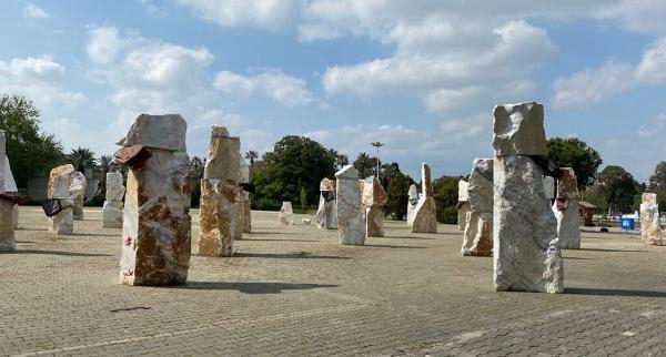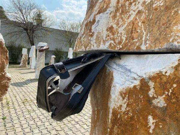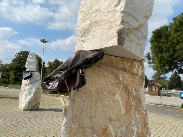 İZMİR Büyükşehir Belediyesi ev sahipliğinde geçen yıl açılan sanatçı Ahmet Güneştekin'in 'Gavur Mahallesi' sergisinin açık hava bölümünde sanatseverlerle buluşan eserleri, vandalların saldırısına uğradı. Mermer blokların arasına sıkıştırılarak sergilenen valizleri almak isteyen kişi ya da kişilerce bloklardan bazıları devrildi, bazıları çalındı.