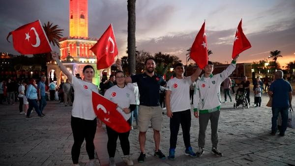 İzmir'in tarihi saat kulesinde kurulan ekrana, 29 Ekim akşam 19:23'te "Yüz Akıyla 100 Yıl" dijital sergisi yansıtıldı. Sergide, Türkiye'nin otomobili, olimpiyatlarda atıcılık branşında Türkiye'ye ilk madalyayı kazandıran Milli Sporcu Mete Gazoz, Nobel Ödüllü Türk Bilim İnsanı Aziz Sancar ve 2023 yılı içerisinde dünya şampiyonluğunu kazanan A Milli Kadın Voleybol Takımı'na yer veriliyor.