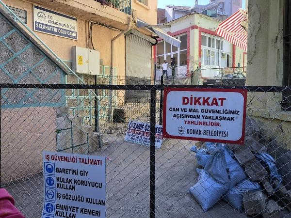 Depremde minaresi hasar gören Selahattin Oğlu Camii'nde de tespit çalışması yapıldığı öğrenildi. Caminin bulunduğu bölgeye, belediye ekiplerince 'Girilmez' yazılı çitler çekildi. Minareye çıkan ekipler, tehlike oluşturan tuğlalar ile briketleri temizlerken, ilerleyen günlerde minarenin tamamen yıkılması bekleniyor. (DHA)