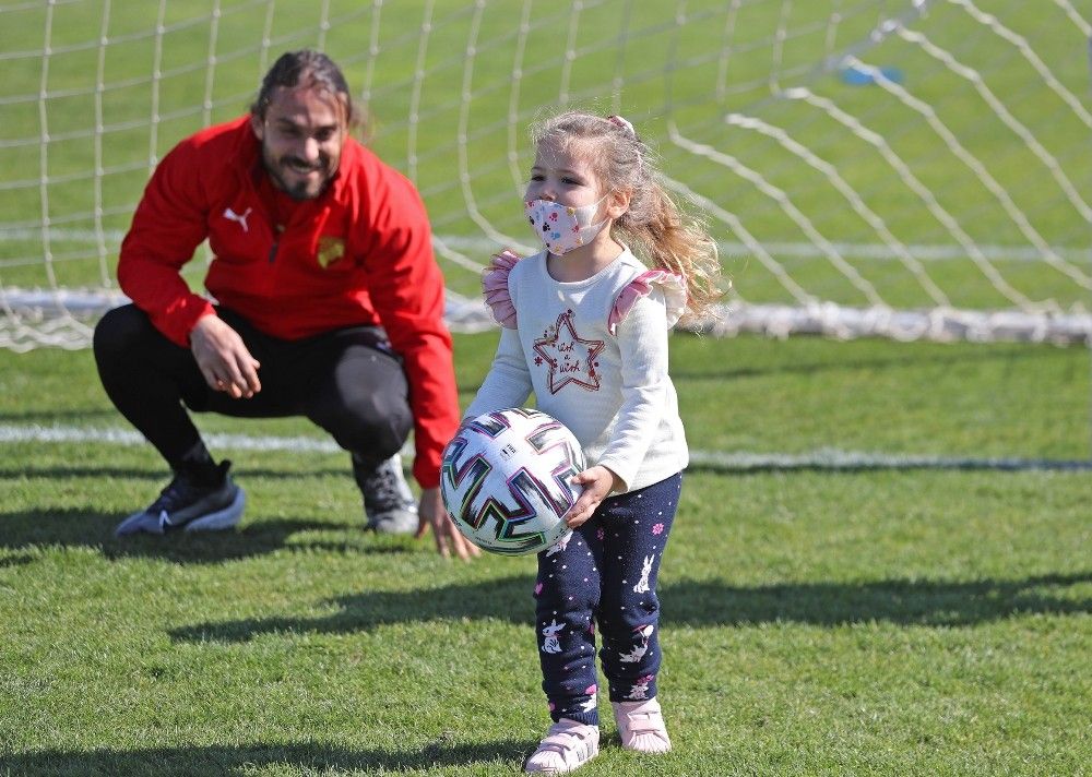 Teknik direktör Ünal Karaman ve futbolcularla sohbet eden minik Ayda, daha sonra top oynayıp, fotoğraf çektirdi.