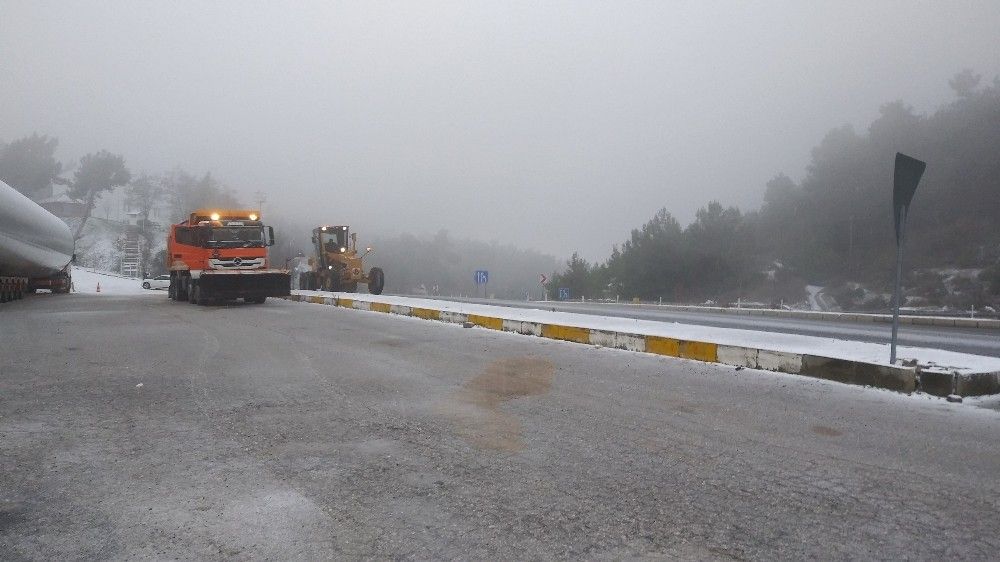 Covid-19 tedbirleri kapsamında sokağa çıkma kısıtlamasının olması nedeniyle araç trafiğinin hafif olduğu Sabuncubeli geçidinde ise Karayolları ekipleri kar küreme ve buzlanmayı engellemek için yollara tuz serpme işlemi gerçekleştirdi.