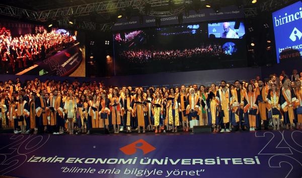 İzmir Ekonomi Üniversitesi 2021-2022 Akademik Yılı mezuniyet törenleri, kampüs içindeki amfitiyatroda gerçekleştirildi. Bu dönem toplamda 1501 öğrencisini mezun eden İEÜ, mezuniyet törenlerini 4 güne böldü. Heyecan ve coşkunun eksilmediği törende keplerini havaya fırlatan gençler, eğitimlerini başarıyla tamamlayarak yeni bir hayata adım atmanın mutluluk ve gururunu yaşadı.