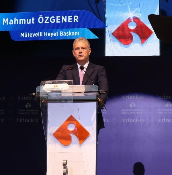 İEÜ Mütevelli Heyet Başkanı Mahmut Özgener, mezun olan gençlerin kısa sürede önemli başarılara ulaşacağına inandığını ve her daim onların yanında olacaklarını söyleyerek, "İzmir Ekonomi Üniversitesi mezunları olarak, iyi bir eğitim almanızı sağlamaya çalıştık. Bundan sonra da iş yaşamınızın ilk dönemlerinde zorlukları aşmanıza yardımcı olmak için özel bir çaba göstereceğiz. Üniversitemizi, umudun ve güvenin yuvası olarak görüyorum. Sizlerin umut ve heyecanınızı pekiştirmeniz, potansiyellerinizi en iyi şekilde ortaya çıkarmanız için hep birlikte çalışıyoruz. Kurumsal olarak başarılarla dolu bir yılı daha geride bıraktık. Ama bu kurumsal gelişimin içinde öne çıkan bireysel başarılar çok daha önemli. Hem öğrencilerimiz hem de mezunlarımız; spordan sanata, bilimden teknolojiye kadar birçok alanda hepimizin göğsünü kabartan başarılara imza attı. Hepinizin kariyerlerinin belirli dönemlerinde benzer başarılara imza atacağını biliyoruz. Projelerinizi gerçekleştirmeniz ve hedeflerinize ulaşmanız için hep yanınızda olacağız" dedi.
