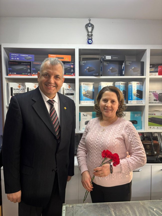 İzmir Elektronikçiler Odası Başkanı Çetin Akbıyık, 8 Mart Dünya Kadınlar Günü dolayısıyla kadın üyeleri ve iş yerlerinde çalışan kadınları ziyaret ederek karanfil verdi.