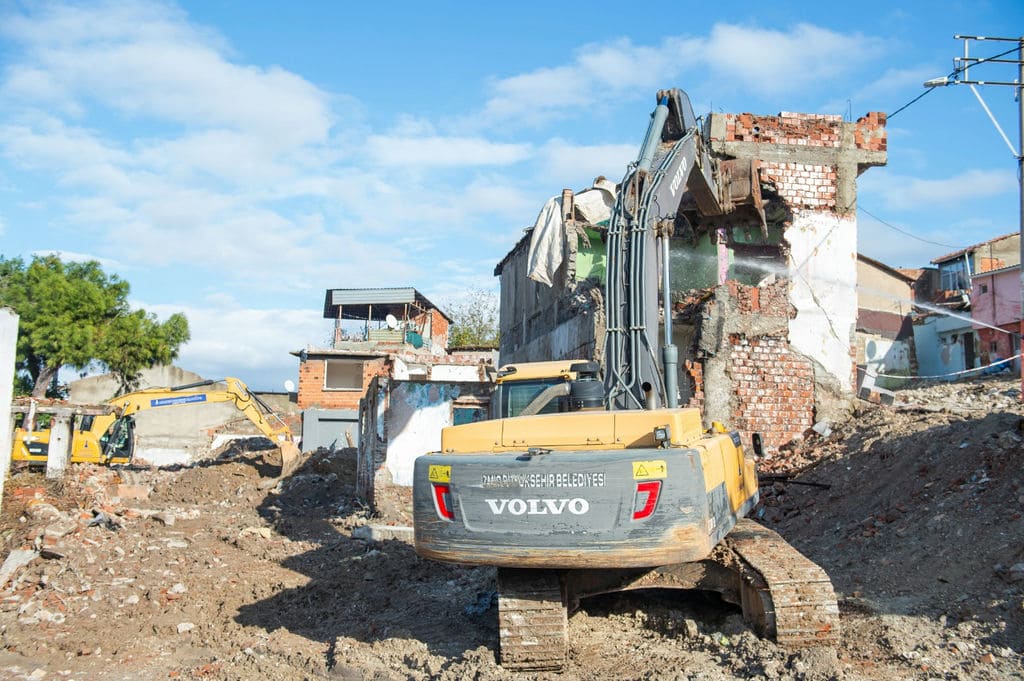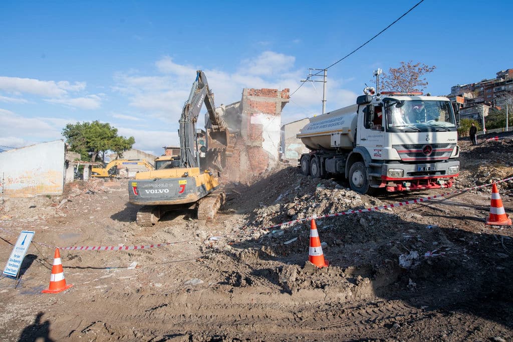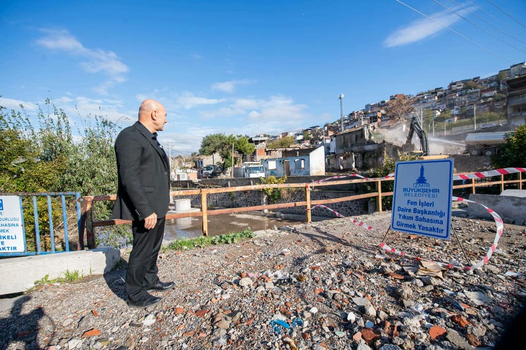 İzmir Büyükşehir Belediye Başkanı Tunç Soyer, yıkım çalışmalarının sürdüğü Yeşildere’de incelemelerde bulundu. Soyer, “Ekonomik ömrünü tamamlayan yapılar yıkılıyor. Hızla çalışmalar sürecek. Burada İzmir’in siluetini değiştirecek tarihi bir proje hayata geçirilecek” dedi.