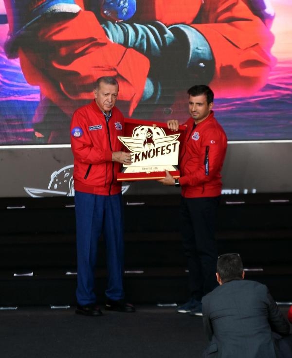 Cumhurbaşkanı Erdoğan, konuşmaların ardından TEKNOFEST yarışmalarında dereceye girenlere ödüllerini takdim etti.