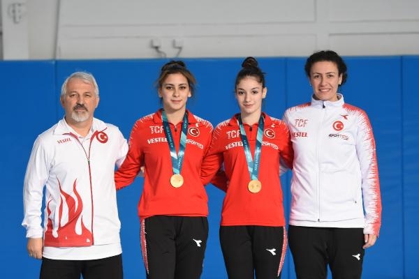 TRAMPOLİN cimnastikte ülkemize uluslararası arenada tarihimizin ilk altın madalyalarını getiren İzmirli milli sporcular Sıla Karakuş ve Sena Elçin Karakaş, büyük mutluluk ve gurur yaşıyor. Azerbaycan'ın başkenti Bakü'de 12-13 Şubat'ta düzenlenen Trampolin Cimnastik Dünya Kupası'nda senkron kategorisinde 44.140 puanla birincilik kürsüsüne çıkan 17 yaşındaki iki sporcu hedeflerinin 2024 Paris Olimpiyatları'na katılmak olduğunu söyledi.