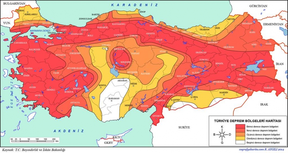 Çizgisellikler ise günümüz morfolojisinde belirgin ancak Kuvaterner aktivitesi hakkında detay jeolojik veri toplanamamış neotektonik dönem yapılarıdır. Bunlar depremselliği hakkında veri toplanamayan ve yorum yapılamayan faylardır. Bölgedeki diri faylar boyunca yoğun bir sismisite izlenir. Tarihsel ve aletsel dönem kayıtları haritalanan fayların çok sayıda depreme kaynaklık ettiğini göstermektedir.