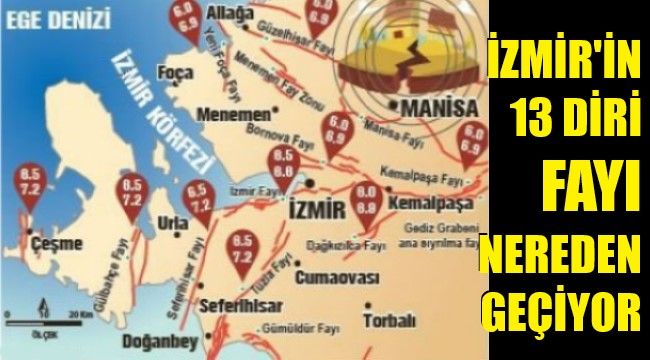 MTA'nın yaptığı çalışmalar sonrası İzmir ve çevresinin fay raporu hazırlandı... O rapora göre 13 diri fay var ve geçtiği yerler şöyle..