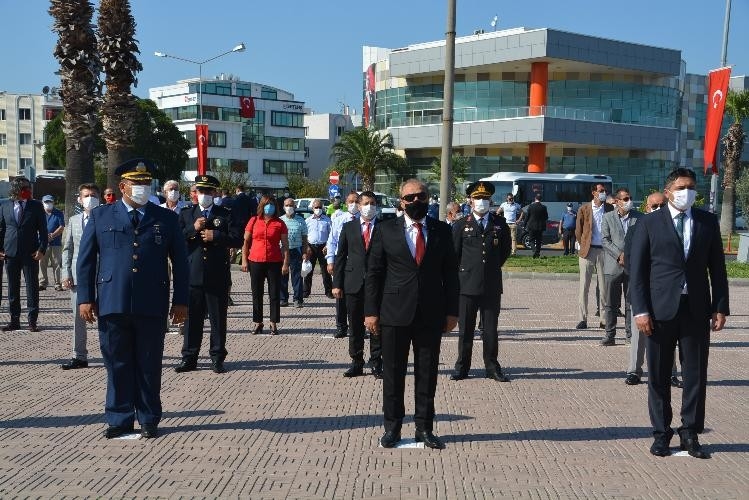 Çeşme Kaymakamı Ünal Çakıcı, Çeşme Belediye Başkanı Ekrem Oran, kamu kurum ve kuruluş temsilcileri, siyasi parti, STK temsilcileri ve vatandaşların katıldığı resmi törende, pandemi nedeniyle sosyal mesafe anonsu yapıldı. Çeşme Kaymakamı Çakıcı da, törene katılanlara sosyal mesafeye uymaları için uyarı yaptı.