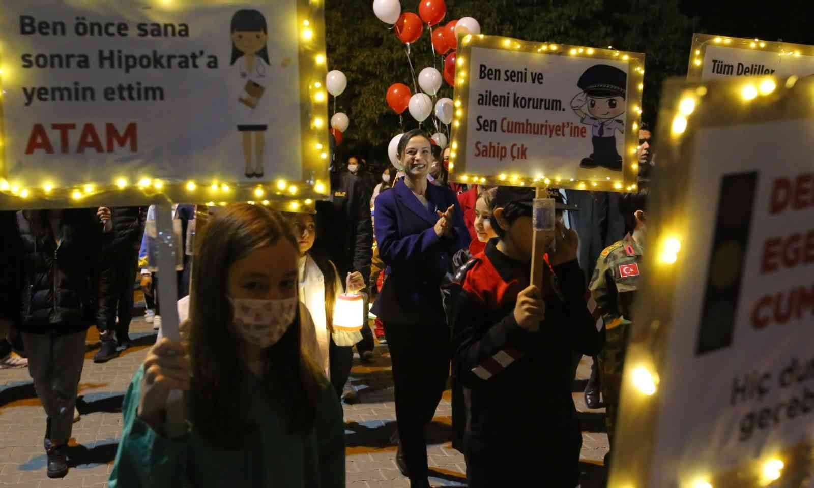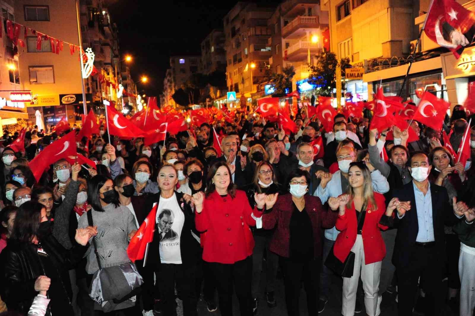 Cumhuriyet meşalesi binlerin coşkusuyla Bayraklı'yı aydınlattı