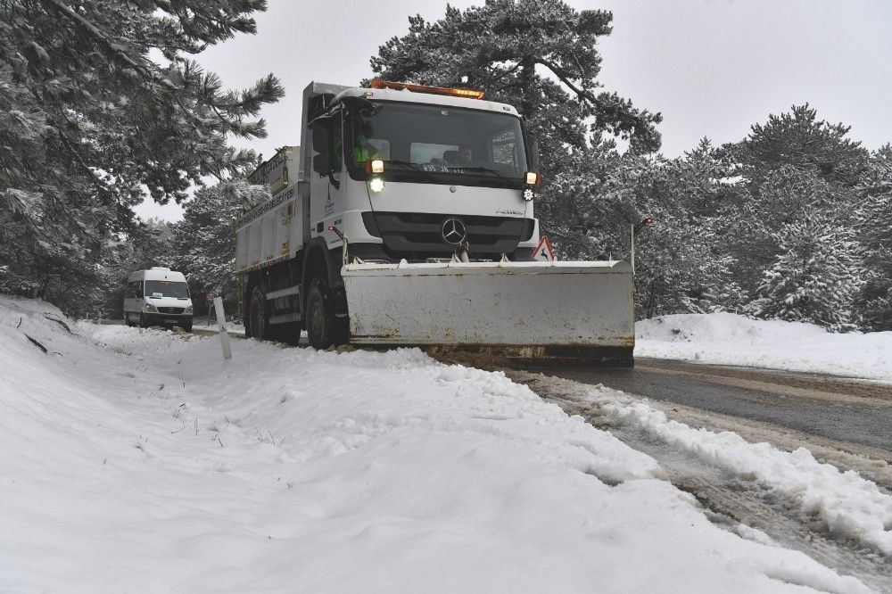 İzmir'in yüksek kesimlerinde etkili olan kar yağışı nedeniyle İzmir Büyükşehir Belediyesi ekipleri köy yollarını açık tutmak için yoğun bir tempoda çalışıyor. Yapılan müdahalelerle kapanan yollar tekrar trafiğe açılırken, ekipler ihtiyaç olan bölgelerdeki çalışmalara ara vermeden devam ediyor.
