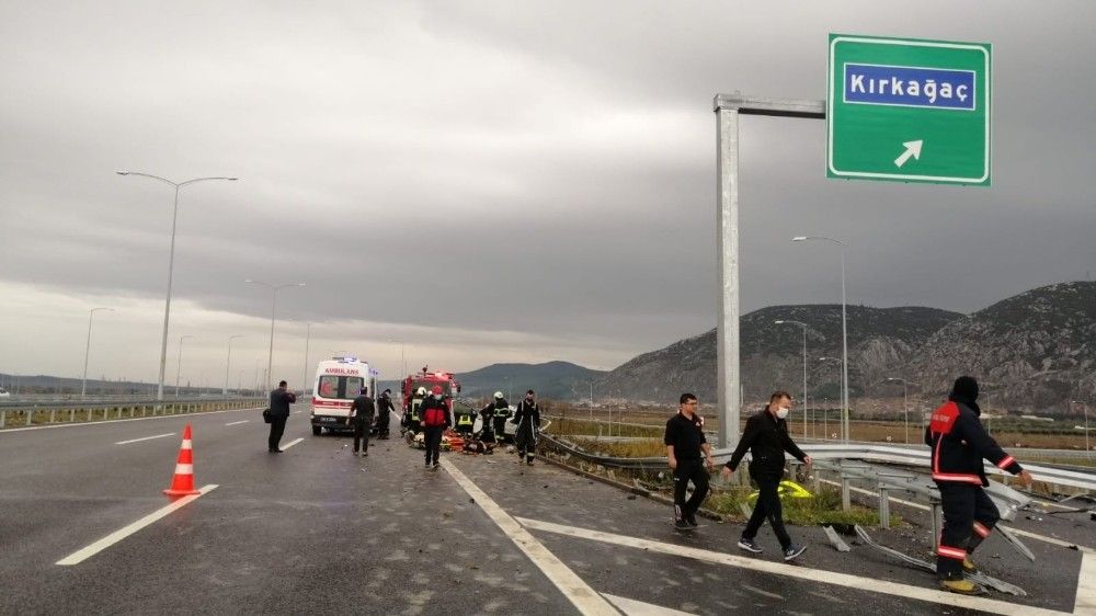 Alınan bilgilere göre, Hayri A. idaresindeki 34 RG 4000 plakalı Renault Clio marka otomobil, Kırkağaç ilçesi gişeleri yakınında sürücüsünün direksiyon hakimiyetini kaybetmesi sonucu bariyerlere çarptı. Kazada sürücü Hayri A. ile yanında yolcu olarak bulunan Enes E. ve Oğuz G. ağır yaralandı. Kaza yerine çok sayıda itfaiye ve 112 sağlık ekipleri sevk edildi. Yaralılar kaza yerinde yapılan ilk müdahalenin ardından hastaneye kaldırılırken, kaza ile ilgili soruşturma başlatıldı.