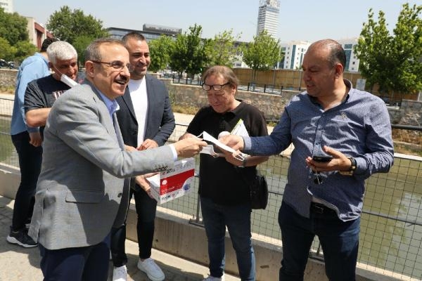 AK Parti İzmir İl Başkanı Kerem Ali Sürekli, havaların ısınmasıyla artan kötü koku sorununa dikkat çekmek için İzmir'in Bayraklı ilçesindeki Manda Deresi'nde maske dağıtarak, soruna yönelik çözüm önerilerini aktardı.