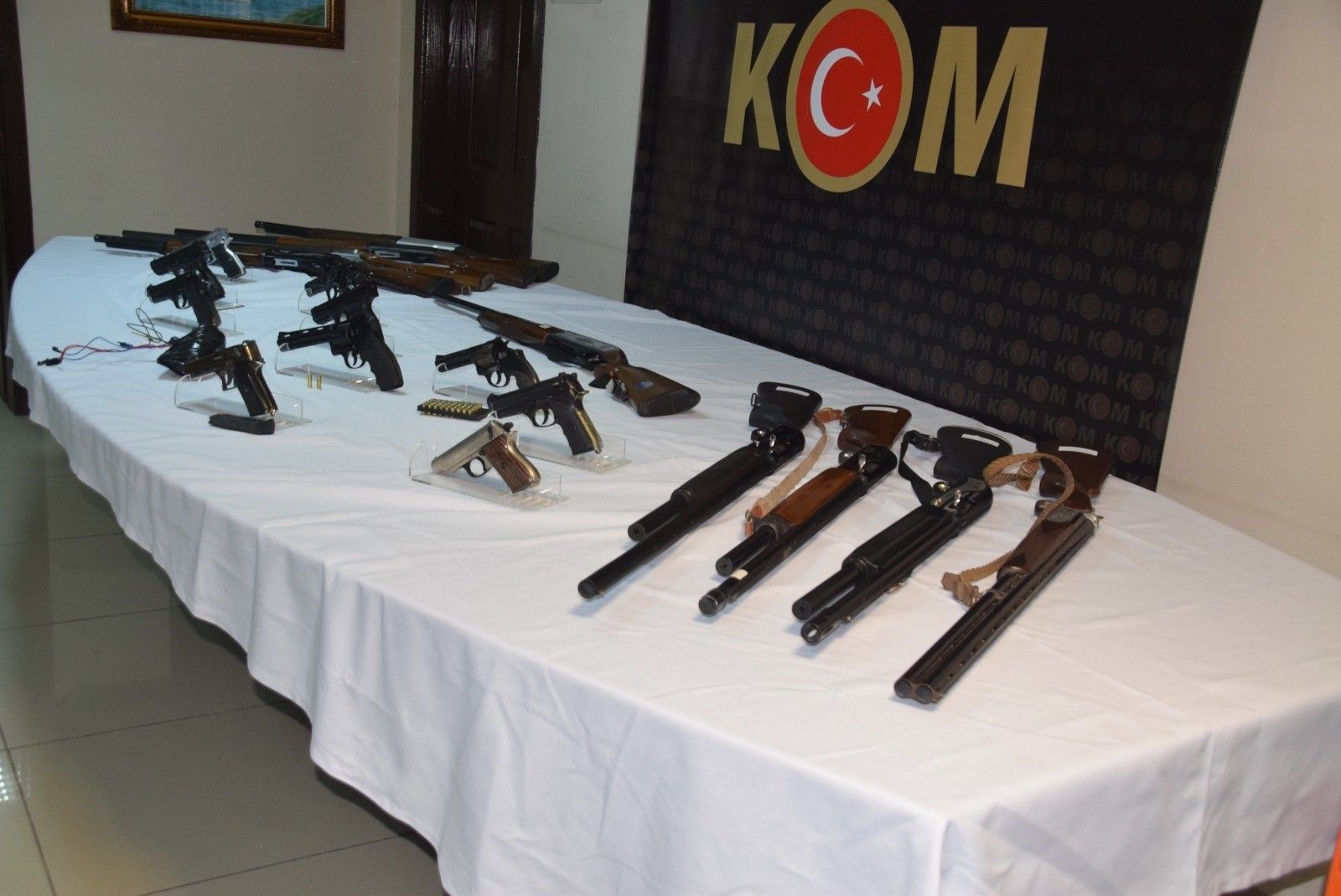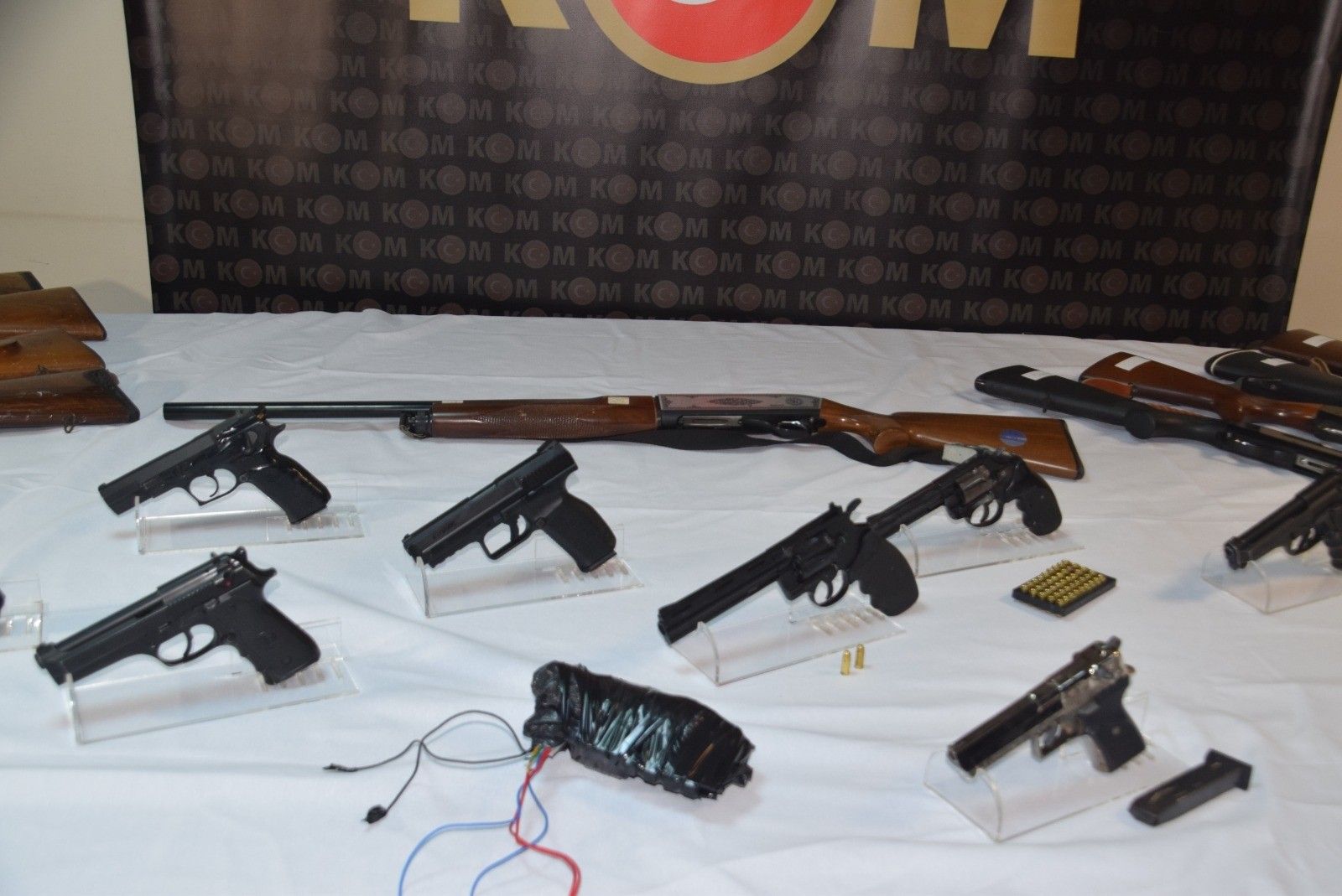 Ekipler tarafından ikametlerde yapılan aramalarda 1 adet EYP (el yapımı patlayıcı), 9 adet ruhsatsız tabanca, 1 adet tabanca namlusu, 10 adet şarjör, 90 adet değişik çapta tabanca fişeği, 9 adet ruhsatsız tüfek, 10 adet kartuş ve 5 adet tabanca yapımında kullanılan malzeme ele geçirildi. Gözaltına alınan 32 şüphelinin emniyetteki işlemlerinin sürdüğü öğrenilirken, yapılan aramalarda adreslerinde bulunmadığı belirlenen 5 şüpheliyi daha yakalama çalışmalarının sürdüğü kaydedildi.