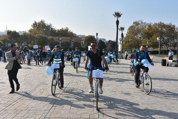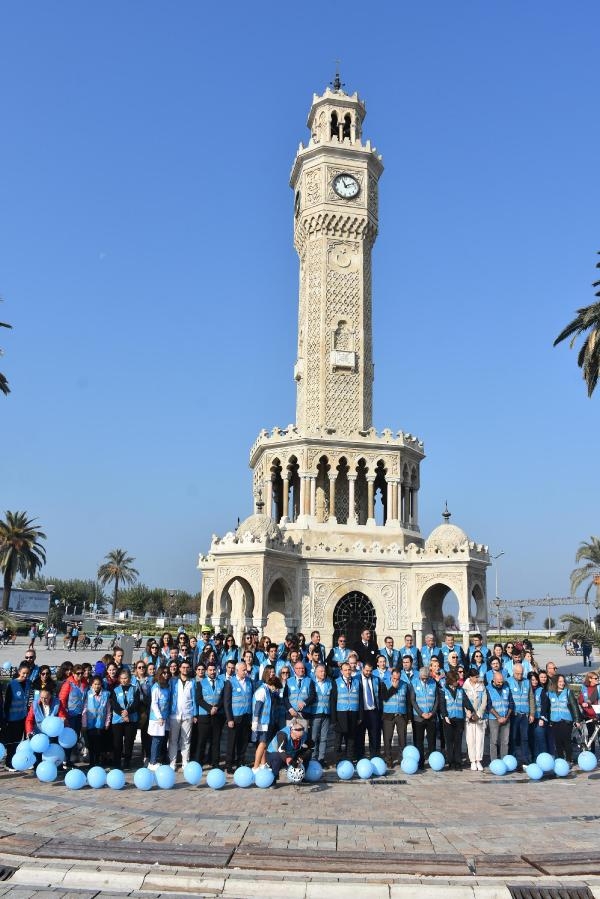 İZMİR'de, diyabet hakkında bilinci artırmak ve farkındalık oluşturmak amacıyla bisiklet turu ve yürüyüş etkinliği yapıldı. Mavi balonlarla, İzmir'in simgesi Tarihi Saat Kulesi çevresinde, diyabetin simgesi olan 'Mavi Halka' oluşturuldu.
