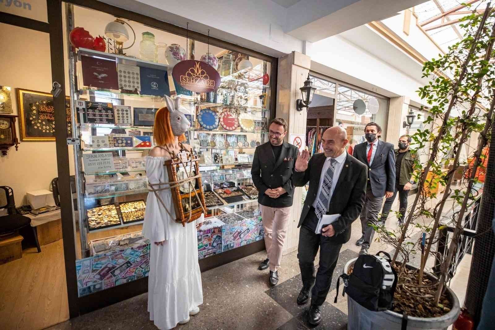 İzmir Büyükşehir Belediye Başkanı Tunç Soyer'in, İzmir'i bir kültür sanat kentine dönüştürme hedefi çerçevesinde Büyükşehir Belediyesi kentin kültür sanat hayatına renk katacak bir sergi daha hazırladı. İzmir Saat Kulesi'nin 120'inci yılına ithaf edilen "Zaman Neyle Ölçülür?" sergisi, 11 sanatçının birbirinden değerli eserlerini sanatseverlerle buluşturdu. Tarihi Kemeraltı Antikacılar Çarşısı'nda yer alan Ayzeradant Galeri'deki serginin açılışını İzmir Büyükşehir Belediye Başkanı Tunç Soyer yaptı. Başkan Tunç Soyer, açılışın ardından Antikacılar Çarşısı'ndaki sanat galerilerini ve antika dükkanlarını ziyaret etti.