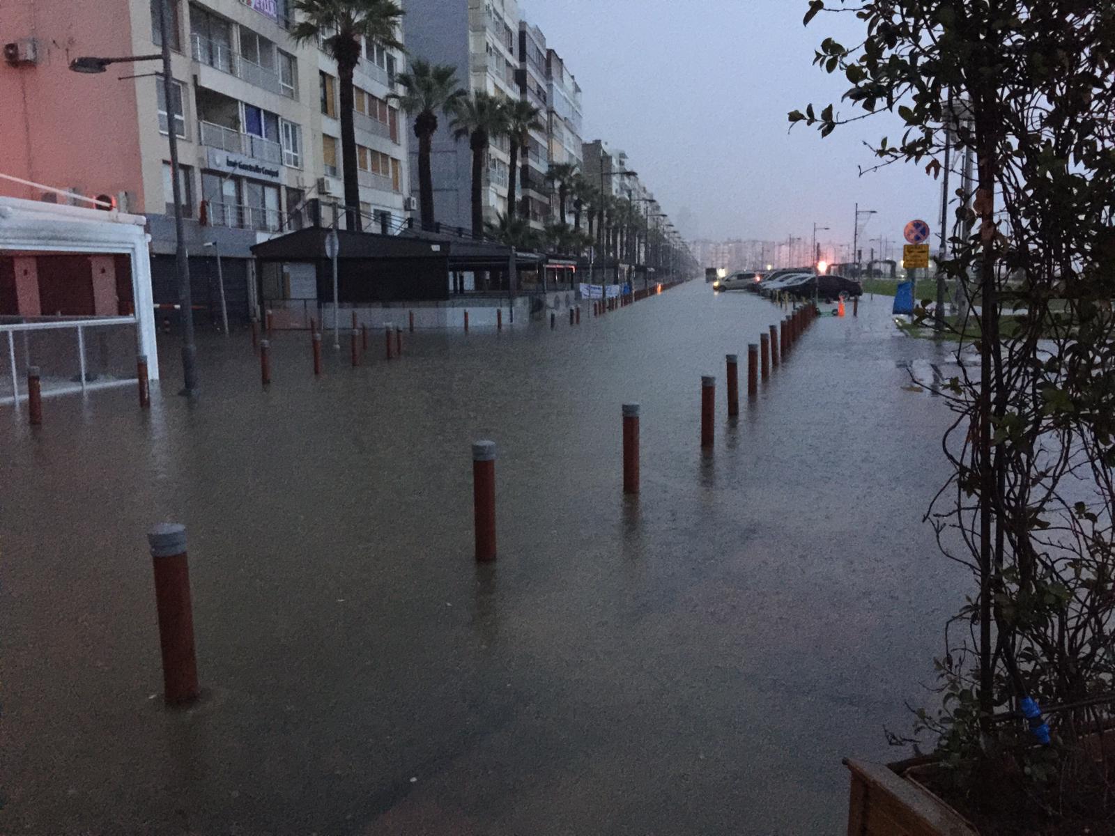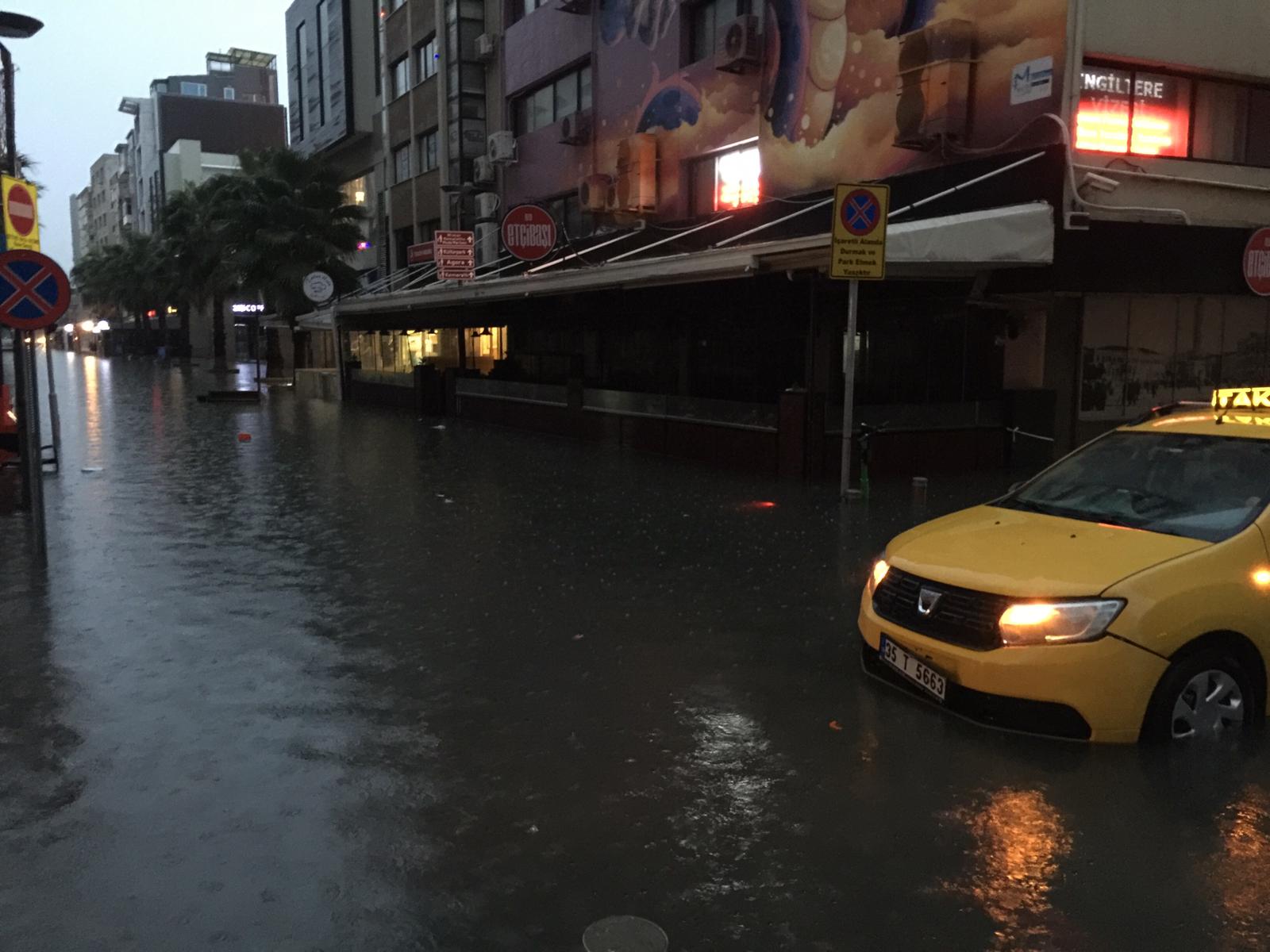 Meteoroloji Genel Müdürlüğü tarafından İzmir için sağanak ve fırtına ikazının ardından gece saatlerinde başlayan ve etkisini gittikçe artıran sağanak sonrası dereler taştı, caddeler göle döndü, ev ve iş yerlerini su bastı. Trafikte bulunan çok sayıda araç ise sular altında kaldı.