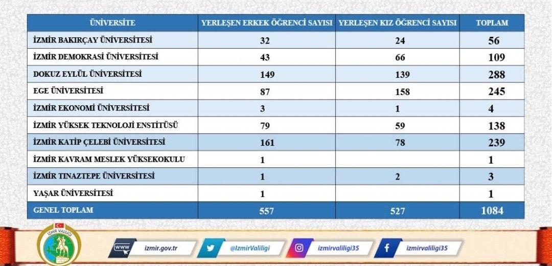 Köşger, paylaşımında İzmir'deki üniversitelerde barınma ihtiyacı karşılanan kız ve erkek öğrenci sayısına dair tabloyu da paylaştı.