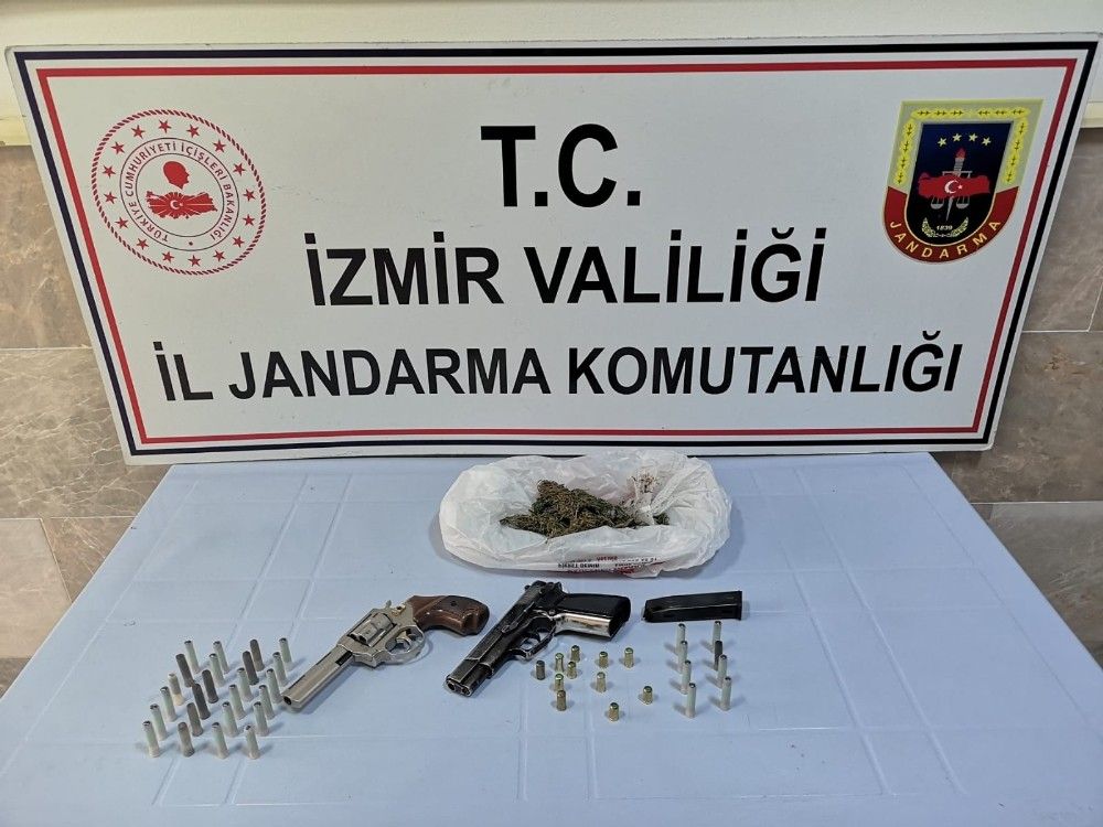 İl Jandarma Komutanlığı KOM (Kaçakçılık ve Organize Suçlarla Mücadele) Şube Müdürlüğü ekipleri ve Narkotik Köpek Unsuru tarafından İzmir'in Beydağ, Ödemiş, Menderes, Bornova, Seferihisar ilçeleri ile Muğla'nın Bodrum ilçelerinde bulunan belli adreslerde eş zamanlı operasyonlar düzenlendi. Gerçekleştirilen operasyonlarda 465 gram kubar esrar, 2 gram metamfetamin, 2 adet 9 mm tabanca, 110 adet 9 mm tabanca fişeği, 5 adet 7x65 mm çapında tabanca fişeği ve 1 adet bong tabir edilen uyuşturucu madde içmek için aparat ele geçirildi. Olayla ilgili, uyuşturucu imal ve ticareti suçundan 6, uyuşturucu kullanmak suçundan 9 olmak üzere toplam 15 kişi gözaltına alınırken, olayla ilgili 2 şüpheliyi yakalama çalışmalarının ise sürdüğü aktarıldı.
