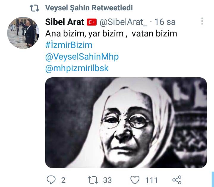 İzmir’i bütün değerleriyle gündeme taşıyan MHP İzmir İl Teşkilatı hem İzmir’in milli değerlerine hem de İzmir’in ve İzmirlilerin marka olmuş değerleri “İzmirBizim” tabelasıyla gündeme getirdi. Konu ile ilgili konuşan İl Başkanı Veysel Şahin, “İzmir bütün değerleriyle bizim şehrimiz diyerek bunu bütün yönleriyle ele almak istedik. İzmirli hemşehrilerimiz tarafından destek görmesi de bizi mutlu etti. Pagosçular bundan gereken dersi almalıdır. Bedeli 940 yıl önce kanla ödenen ve Mustafa Kemal Atatürk’ün düşma ayağı basamaz dediği İzmir’e Yunan isim verenler herhalde mesajımızı almıştır” Dedi. MHP İzmir’in Ar-Ge Komisyonu olarak hazırlanan İzmir’in değerleri içerikli tivitler binlerce etkileşime sebep oldu. Tivitler içinde en dikkat çekici olanlar “Dario Mereno, Atilla İlhan, Ayhan Işık, Çolpan İlhan, Metin Oktay, Zübeyde Hanım, Reşat Nuri, Fırat Yılmaz Çakıroğlu, Fethi Sekin, İzmir’in spor kulüpleri, antik şehirler, Hasan Tahsin, Gevrek ve Boyoz” paylaşımlarıydı. Alevi sünni kardeşliğinin de işlendiği tivitler çok sayıda reetweet aldı.