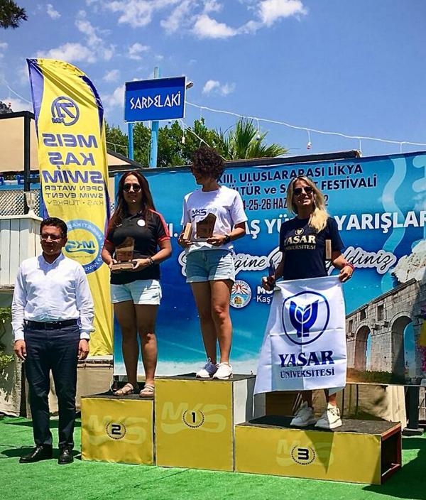 YAŞAR Üniversitesi Turizm Rehberliği Bölümü öğrencisi Aslı Keçelioğlu Uluslararası Meis-Kaş Yüzme Yarışı'nda üçüncü oldu.