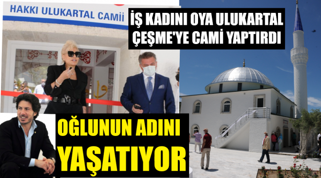 İzmir’de bugüne kadar çok sayıda sosyal yardım projesinde yer alan, Bornova’da anaokulu yaptıran Oya Ulukartal, 11 yıl önce vefat eden oğlu Hakkı Ulukartal adına Çeşme’de cami yaptırıp, Diyanet’e teslim etti.