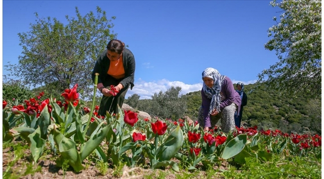 İzmir'in Dikili ilçesinde kooperatif çatısı altında güçlerini birleştiren kadın üreticiler, kozmetik ve ilaç sektöründe kullanılmak üzere yetiştirdikleri lale soğanlarını bir firma aracılığıyla Hollanda'ya gönderiyor.