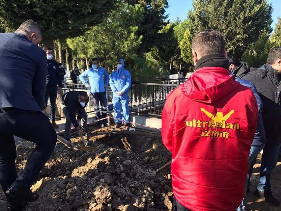 Bir süredir hastanede Covid-19’a bağlı hastalık nedeniyle tedavi gören Ulaş Bayam, dün hayata gözlerini yumdu. Bayam, Aliağa'da toprağa verildi. Mezarı adeta bir çiçek bahçesine döndü. Mezarın üstü Galatasaray atkılarıyla örtüldü.