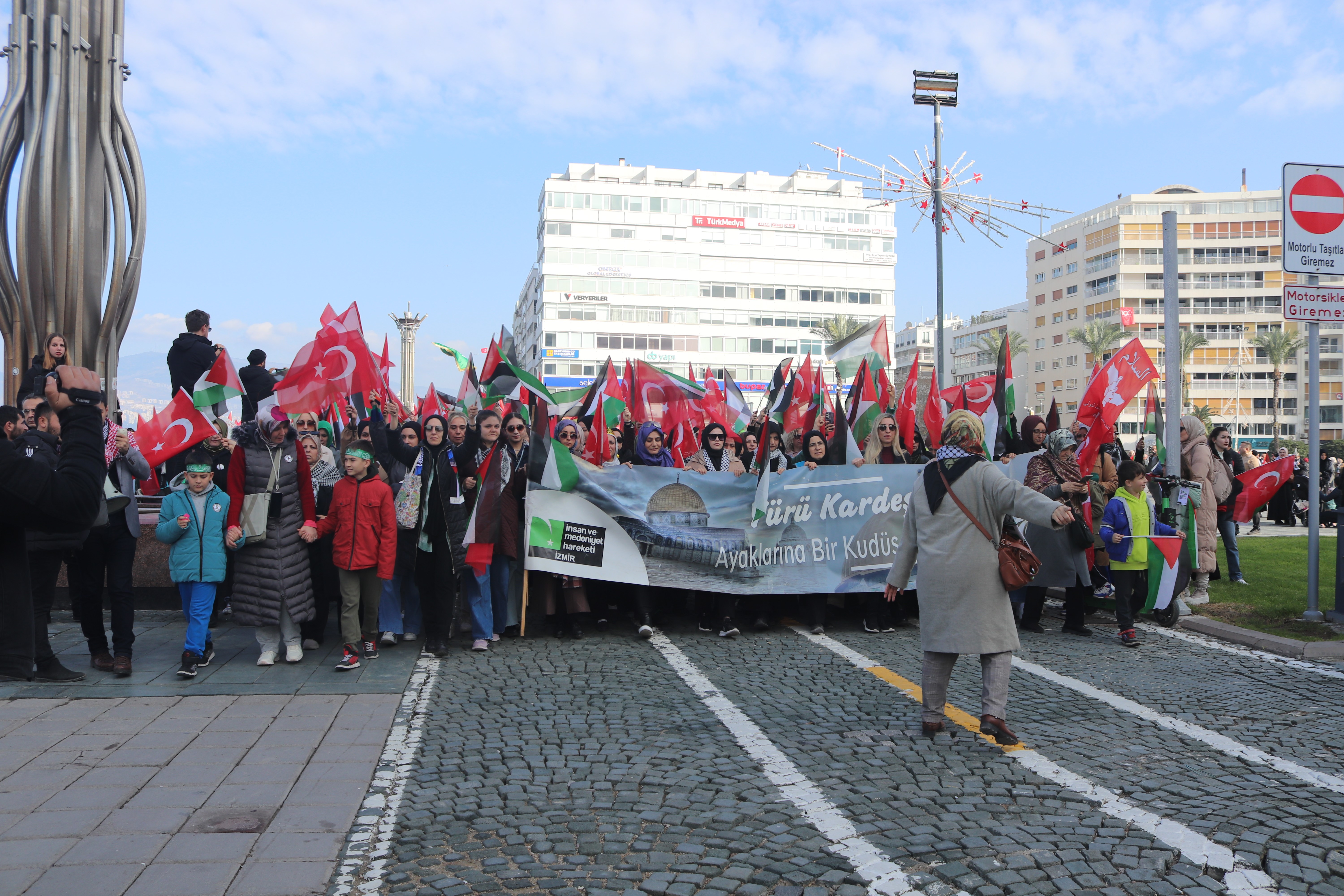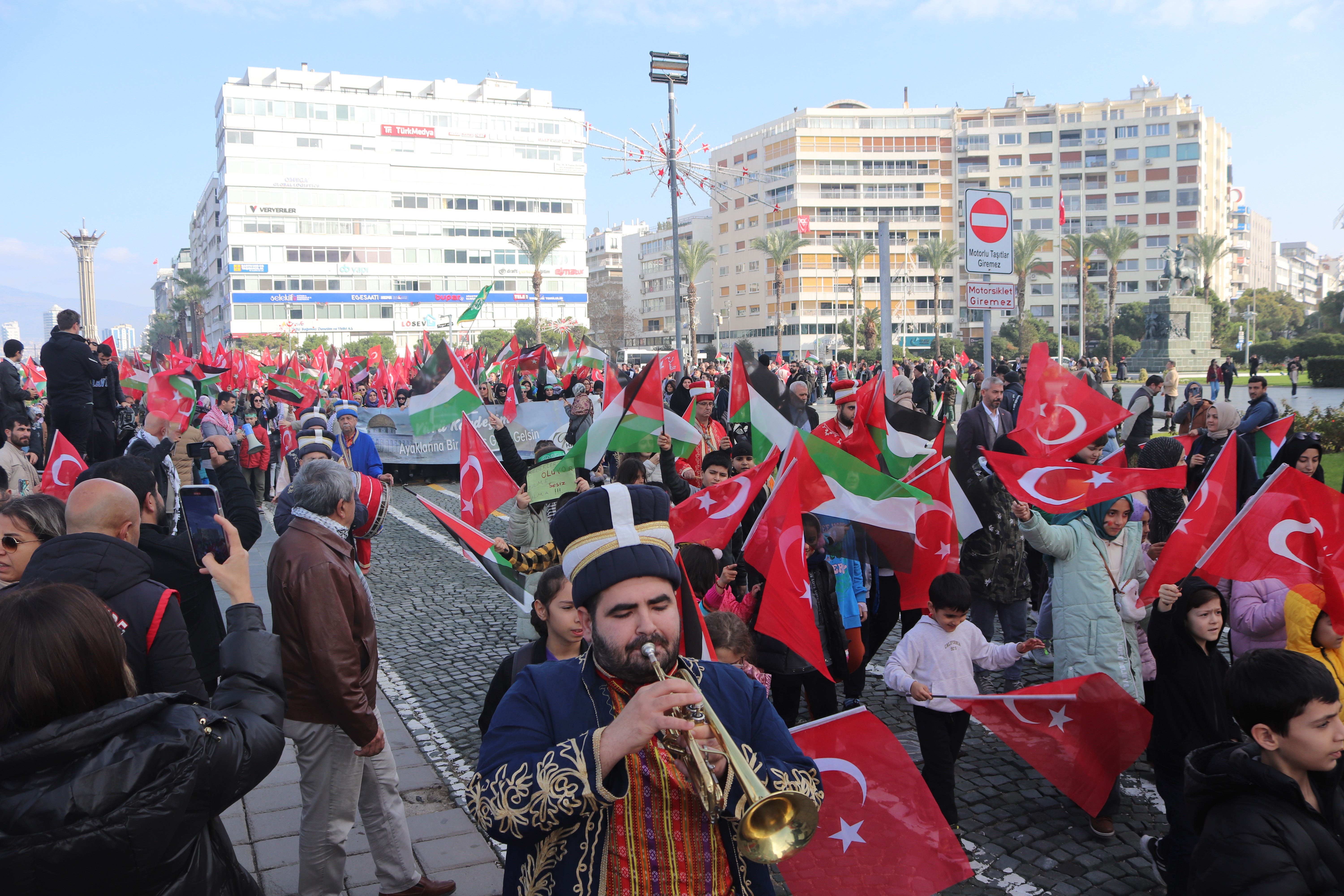 İsrail’in Gazze’ye yönelik saldırıları, İzmir'de düzenlenen yürüyüşle protesto edildi.