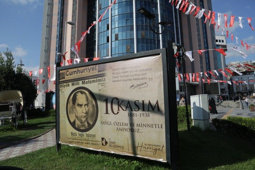 İzmit Belediyesi, Türkiye Cumhuriyeti'nin kurucusu, Gazi Mustafa Kemal Atatürk'ün ebediyete intikalini, 82. yıl dönümüne özel hazırlamış olduğu billboardlarla andı. Dönemin gazeteleri Tan, Akşam Postası ve Cumhuriyet Gazetesi'nde yer almış olan matem haberlerini billboardlara taşıyan İzmit Belediyesi, 10 Kasım'a özel düzenlemiş olduğu görseller ile İzmitliler'in beğenisini kazandı.