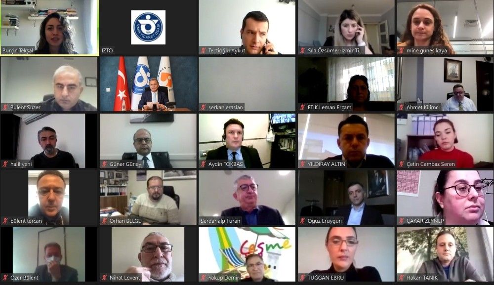 İzmir Ticaret Odası (İZTO) tarafından online olarak düzenlenen ve konaklama sektörünün mevcut sorunlarına ilişkin çözüm önerilerinin ve gelecek döneme ilişkin öngörülerin paylaşıldığı toplantıya, İzmir'de bulunan konaklama sektörü yöneticileri ile sektör temsilcileri katıldı.
