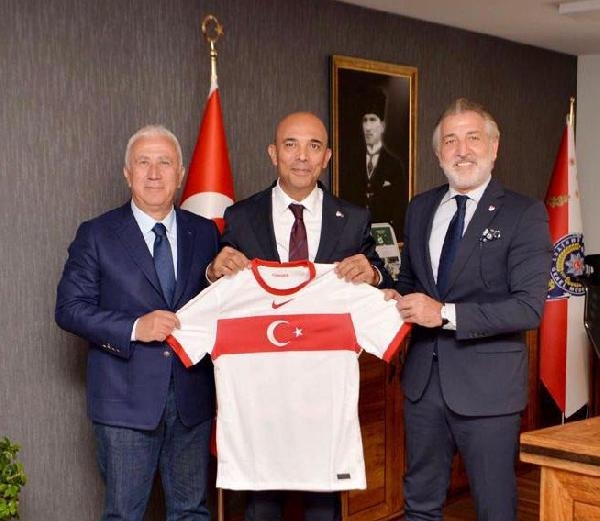 İZMİR Spor Kulüpleri Birliği Vakfı (İZVAK) Başkanı Ali Erten ve Başkan Vekili Talat Papatya, İzmir Valisi Yavuz Selim Köşger ile İzmir Emniyet Müdürü Mehmet Şahne'yi ziyaret etti. Aynı zamanda Türkiye Futbol Federasyonu (TFF) Yönetim Kurulu Üyesi olan Talat Papatya ve TFF Fair-Play ve Sosyal Sorumluluk Kurulu Üyesi Erten, Köşger ve Şahne'ye Milli Takım forması hediye ettiler.