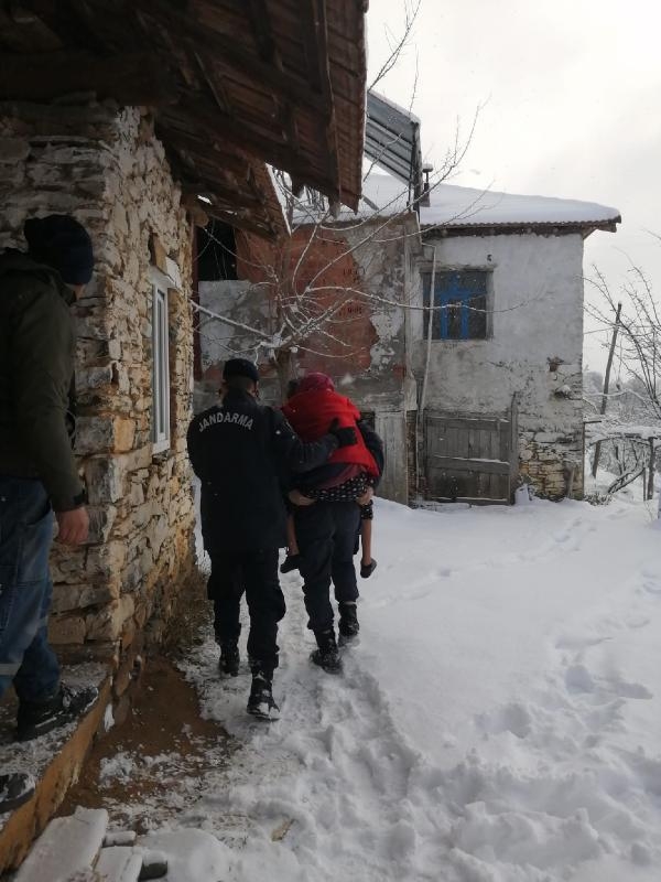 AYDIN'ın Bozdoğan ilçesinde, jandarma personeli diyaliz hastası 79 yaşındaki Ayşe Konya'yı sırtında taşıyarak hasta nakil aracına ulaştırdı.