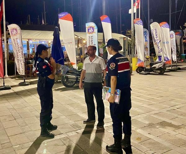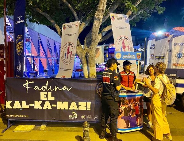 MUĞLA'nın Bodrum ilçesinde, jandarma ekipleri 34'üncü American Hospital The Bodrum Cup Yelken Yarışları kapsamında etkinliklere katılan 255 erkeğe 'Kadına El Kalkamaz' konulu eğitim verirken, 160 kadın vatandaşa ise KADES uygulaması konusunda bilgilendirme yaptı.
