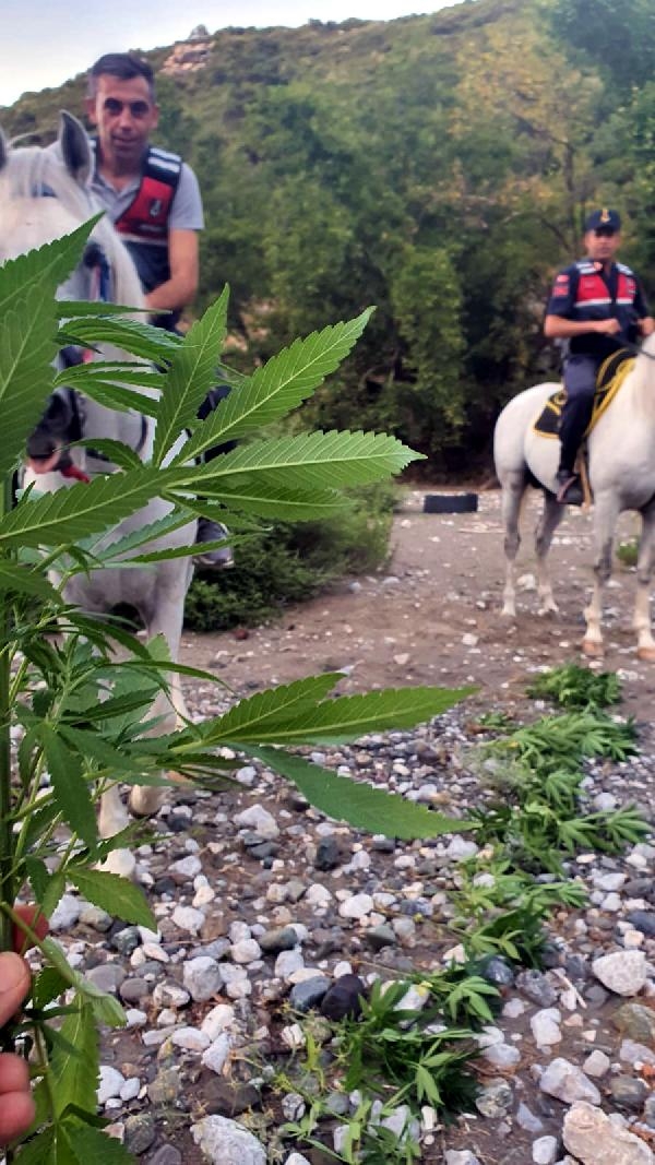 MANİSA'nın Yunusemre ilçesinde jandarmanın at üzerinde yaptığı operasyonda ormanlık alana ekilmiş 60 kök hint keneviri ele geçirildi. Ekipler, hint kenevirleri eken şüpheli veya şüphelilerin tespit edilip, yakalanması için çalışma başlattı.