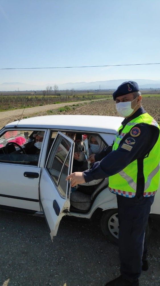 Jandarmadan kadınlara karanfil