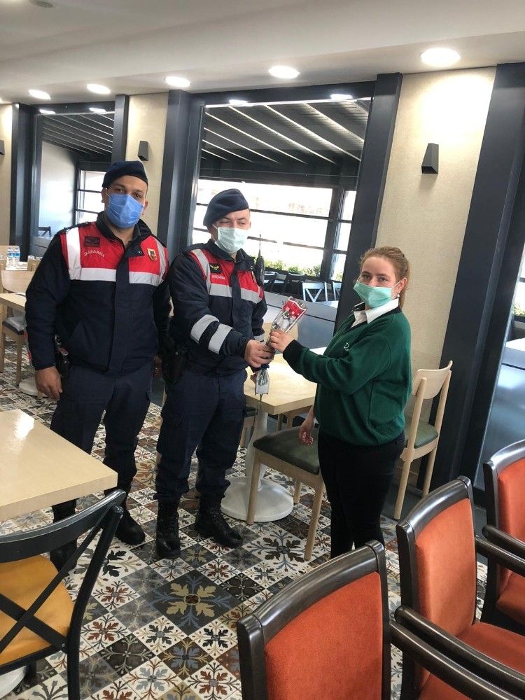 İzmir İl Jandarma Komutanlığı ekipleri, 8 Mart Dünya Kadınlar Günü nedeniyle kadınlara karanfil dağıttı.