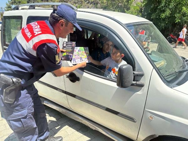 AYDIN'ın Kuşadası ilçesinde jandarma ekipleri Dilek Yarımadası Milli Parkı'nı ziyarete gelen vatandaşları yaz sezonunda çıkabilecek orman yangınlarına karşı bilgilendirme broşürü dağıttı.