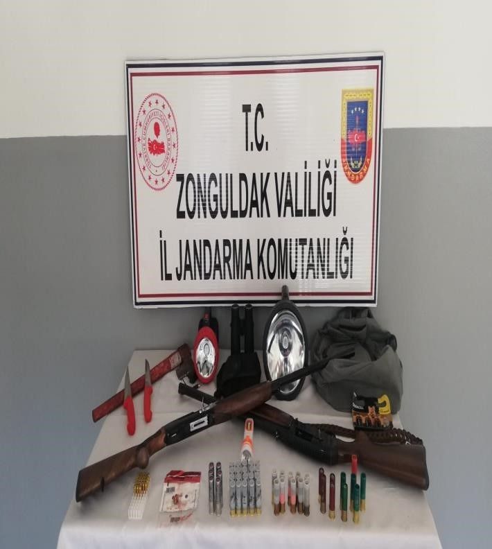 Zonguldak'ta jandarma ekipleri yaban hayvanı avlayacakları ihbarını aldıkları aracı durdurdu. Araçtan 300 kilogram yabani hayvan eti ile av tüfeği ve fişek ele geçirildi.
