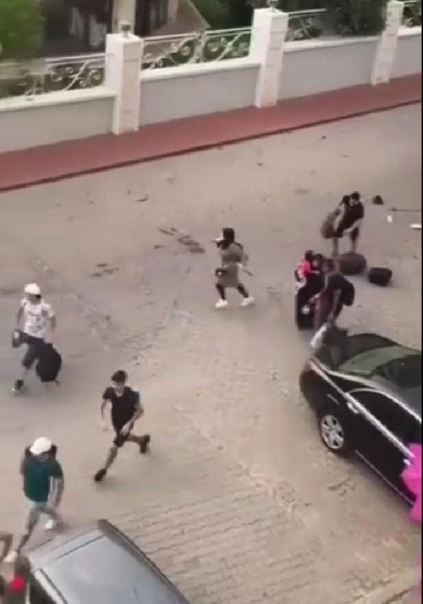 Göçmenlerin kamyonetin kasasından inme ve etrafa dağılma anları, cep telefonu kamerasıyla saniye saniye kaydedildi. (DHA)