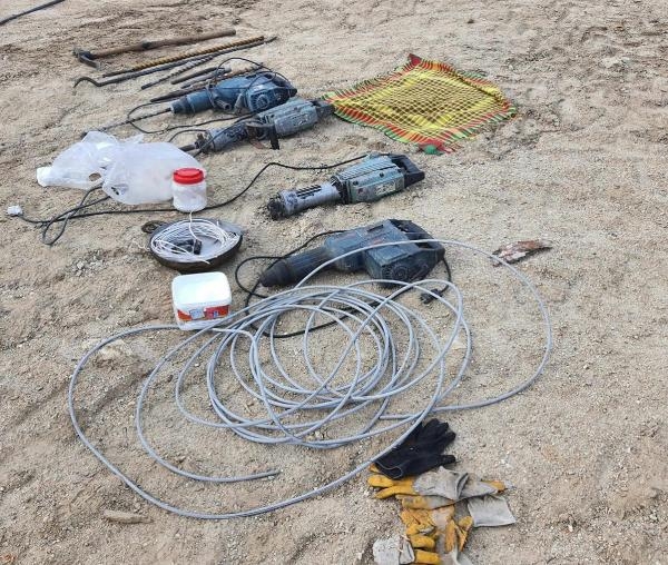 Muğla'nın Yatağan ilçesinin Hacıveliler Mahallesi Gökbeldağı mevkinde kaçak kazı yapılacağı bilgisini alan jandarma ekipleri, operasyon düzenledi. Ekipler, operasyonda, 2 cep telefonu, 1 jeneratör, 4 hilti, 8 kırıcı demir uç, 1 demir kanca, 10 metre uzunluğunda elektrik kablosu, 1 merdiven, 1 kazma, 1 kürek, 1 köpük, 4 kilogram şeker gübresi ve 5 adet boru ele geçirildi. Gözaltına alınan A.D. ve İ.D. Jandarma merkezine götürüldü. (DHA)