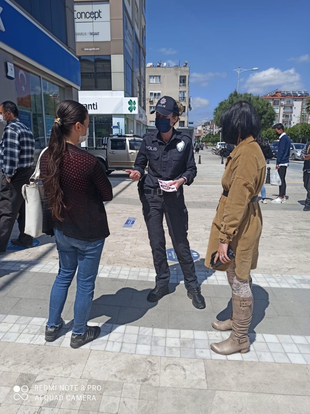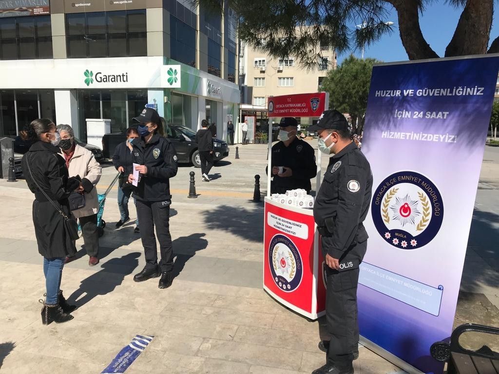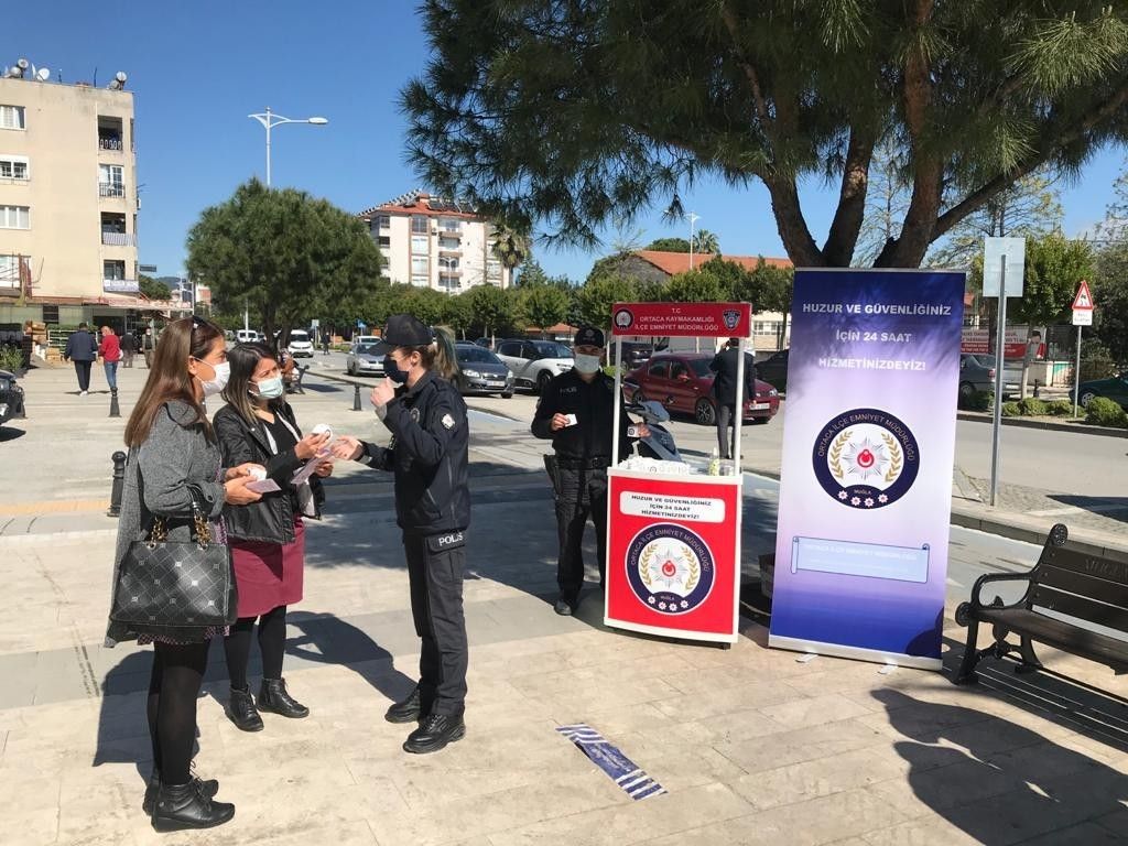 Muğla'nın Ortaca ilçesinde polis ekiplerince KADES uygulaması tanıtıldı, vatandaşlara maske dağıtıldı.