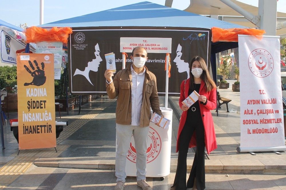Atatürk Kent Meydanı'nda kurulan stantta kadınları bilgilendiren polis görevlileri, olası bir şiddet ve taciz durumlarında kullanabilecekleri uygulama hakkında detaylı bilgi vererek, kendilerine bir tuş kadar yakın olduklarını ifade etti. Kadınlara broşür dağıtan ekipler, bazılarının telefonuna KADES'i indirerek nasıl kullanacaklarını uygulamalı olarak gösterdi. 25 Kasım Gününün "Kadına Yönelik Şiddete Karşı Uluslararası Mücadele Günü" olması münasebetiyle kadın haklarının korunması, toplumsal farkındalığın arttırılmasını amaçlanan etkinliğe, kadınlar yoğun ilgi gösterirken Aile, Çalışma ve Sosyal Hizmetler İl Müdürlüğü tarafından açılan standa da Aydınlılar kadına karşı şiddet konusunda bilgilendirildi. Stantlarda Aydınlı kadınlar bilgilendirilirken, çevreye bırakılan ve "Kadınlar için buradayız" yazılı dövizler de görenlerin beğenisini topladı.