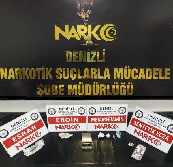 Denizli'de uyuşturucu madde ticareti yapan ve kullanan kişilerin yakalanmasına yönelik ekipler operasyonlar gerçekleştirdi. Yapılan operasyon sonucu 4 şüpheli ekipler tarafından kıskıvrak yakalandı. Şüphelilerin evlerinde ve arabalarında yapılan aramalarda kadın çantası içerisine gizlenmiş vaziyette 1 kilo 500 gram metamfetamin maddesi ile evin çeşitli yerlerine gizlenmiş vaziyette 5 bin kullanımlık sentetik kannabinoid maddesi, 2 adet hassas terazi ve 1 adet ruhsatsız av tüfeği ele geçirildi.