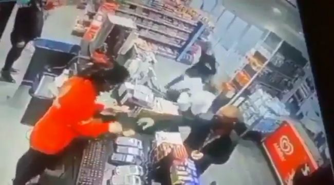 Benzinlik marketinde bir kadının boğazına bıçak dayanarak darbedildiği sırada olay yerinde bulunan kişiler, film izler gibi seyretti, bazıları da hiçbir şey yokmuş gibi alışveriş yaptı, kasaya para verdi. O anlar, güvenlik kamerasına yansıdı.
