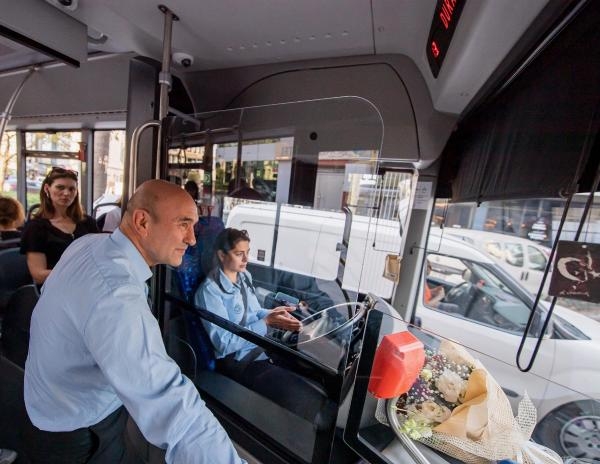 İzmir Büyükşehir Belediye Başkanı Tunç Soyer, önceki gün çalıştığı hatta durak harici yolcu almadığı için yumruk atılan kadın şoför Burçin Akça'ya sürpriz yaptı. Belediye Başkanı Soyer, Burçin Akça'nın kullandığı 253 numaralı otobüse Dokuz Eylül Rektörlüğü'nün karşısındaki duraktan binip, 'geçmiş olsun' dileklerini iletti. Akça ise yolcuların arasında gördüğü Belediye Başkanı Soyer'e teşekkür etti.