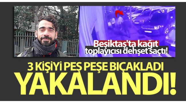 Beşiktaş'ta 3 kişiye saldıran ve akli dengesi bozuk olduğu öğrenilen kağıt toplayıcı bir şahıs, yakalandı.