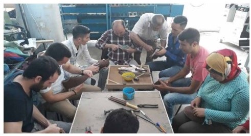 Fotoğraf sözde ayakkabıcı kursiyerler (İZKA 2017 Faaliyet Raporundan). Ancak hiç makine yok.