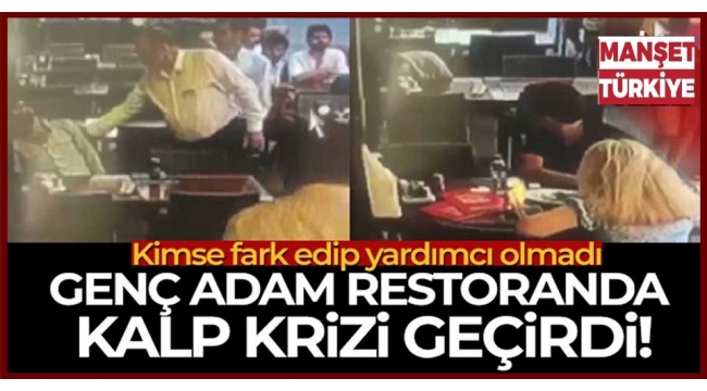 İzmir'in Konak ilçesinde bir işçi, yemek yemek için geldiği restoranda kalp krizi geçirerek hayatını kaybetti. O anlar güvenlik kamerası tarafından kaydedilirken, kalp krizi anında kimseni olayı fark etmemesi ve yardıma gelmemesi dikkat çekti.